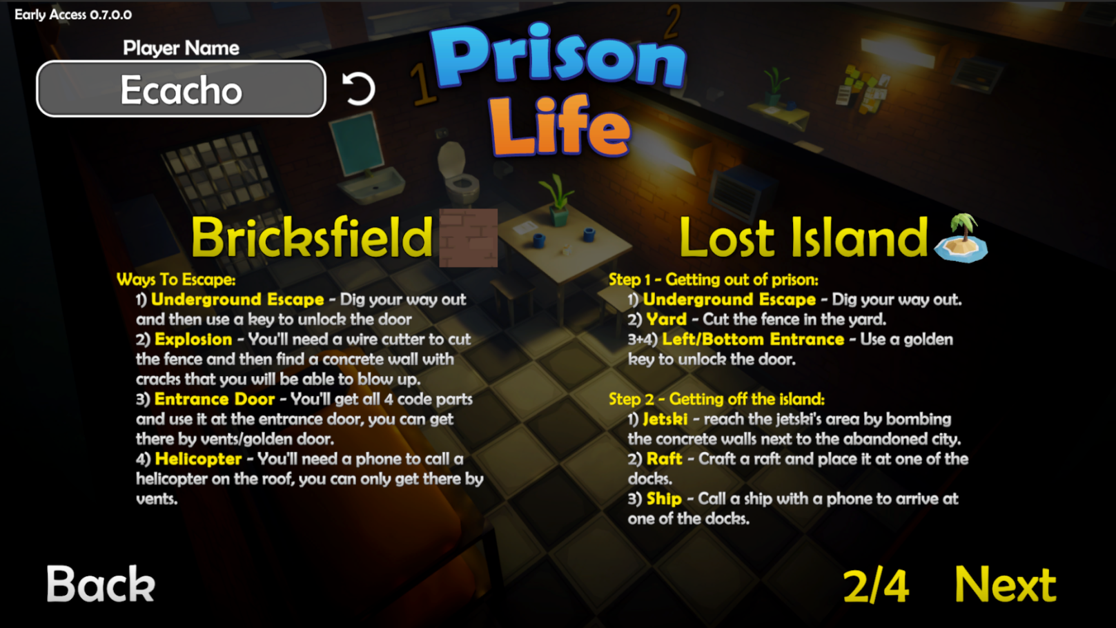 - New Map - Lost Island! Escaping this map requires escaping the prison and the island.