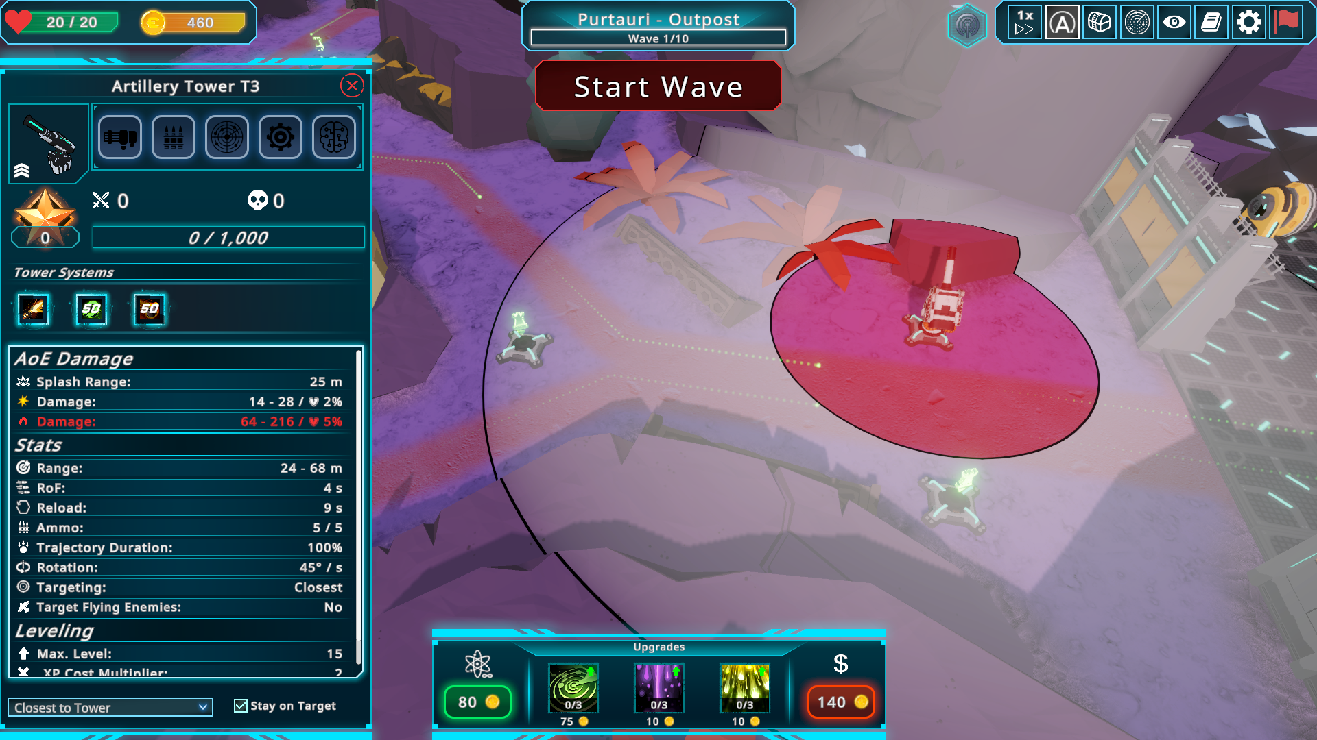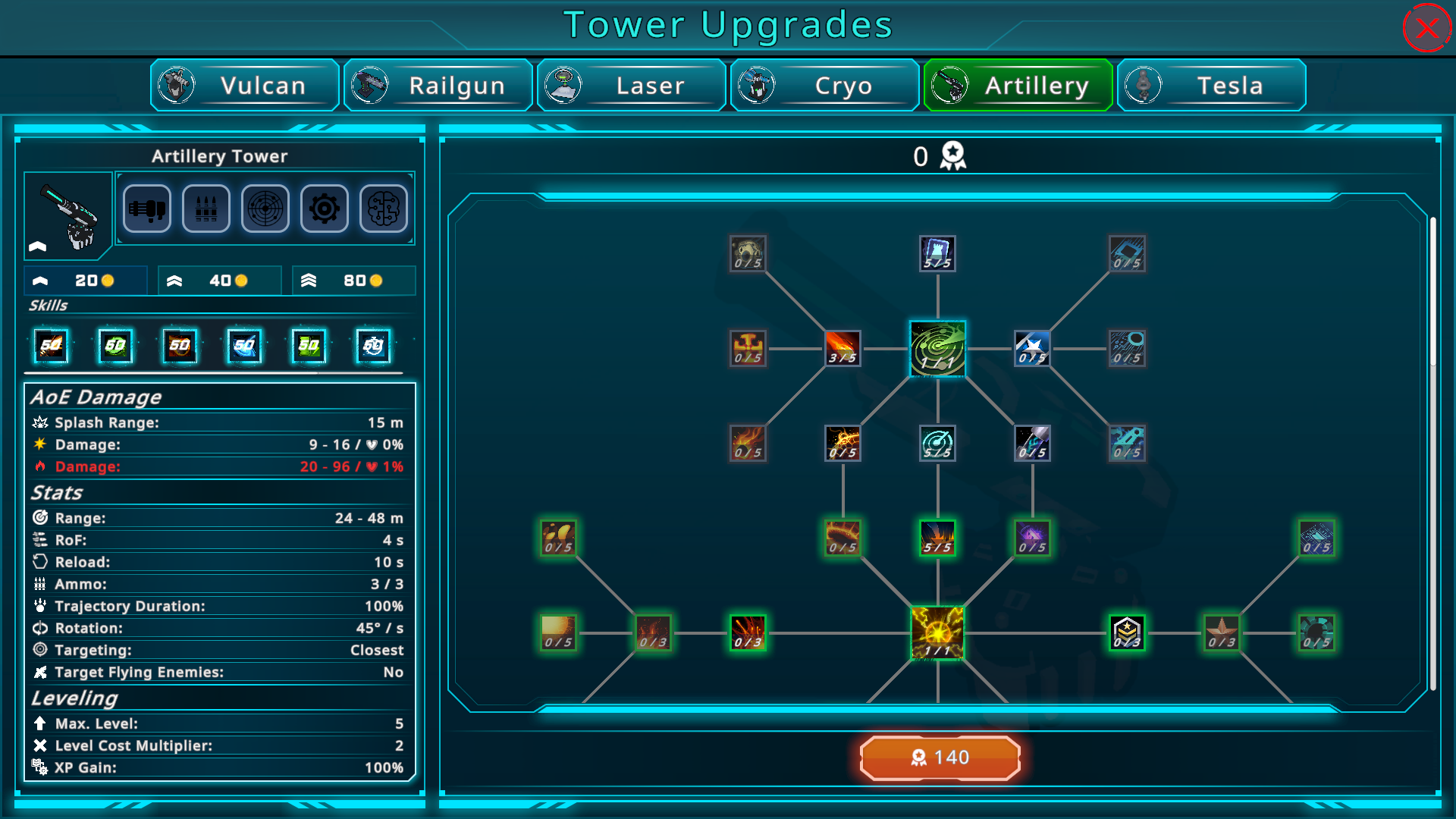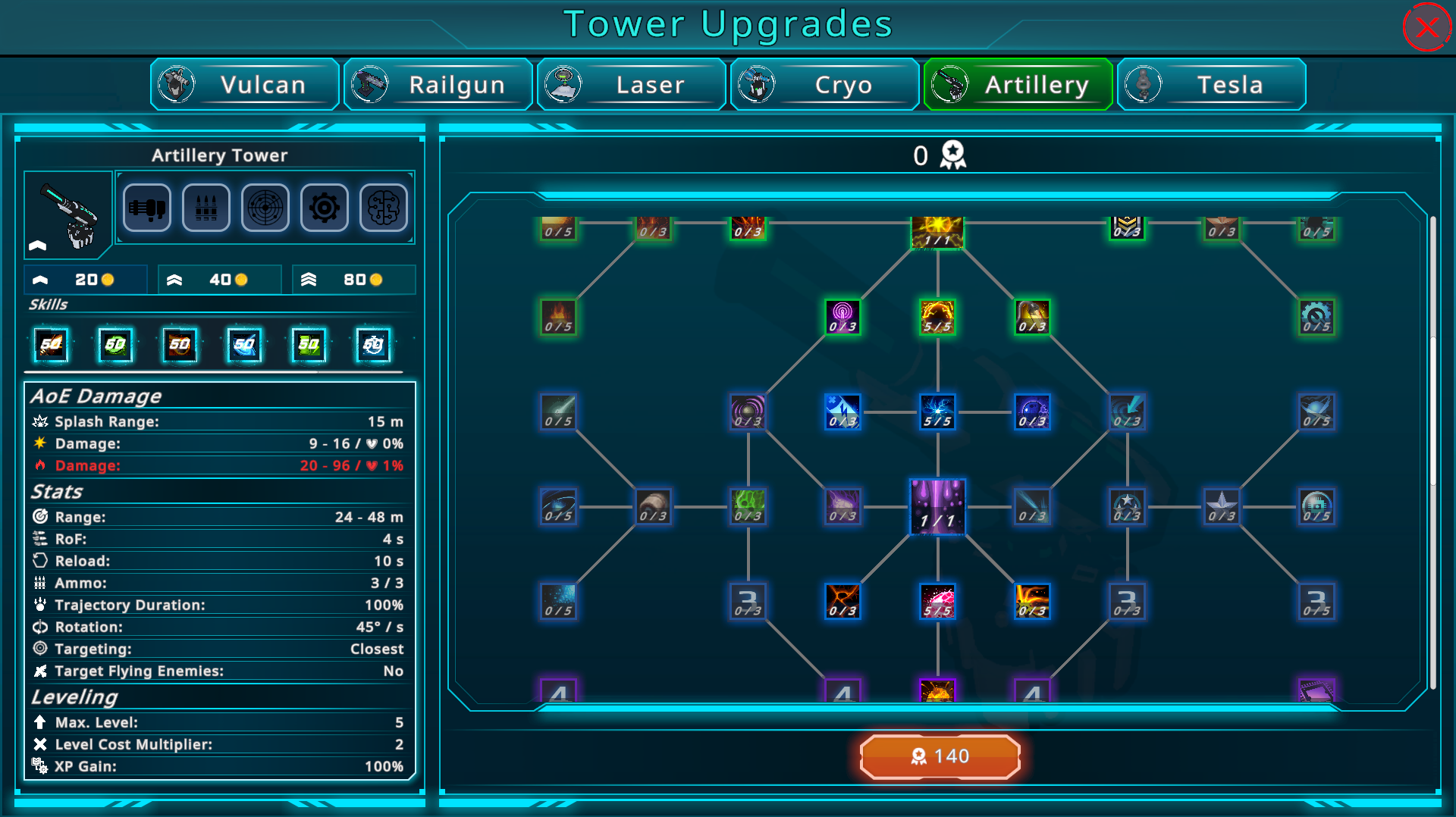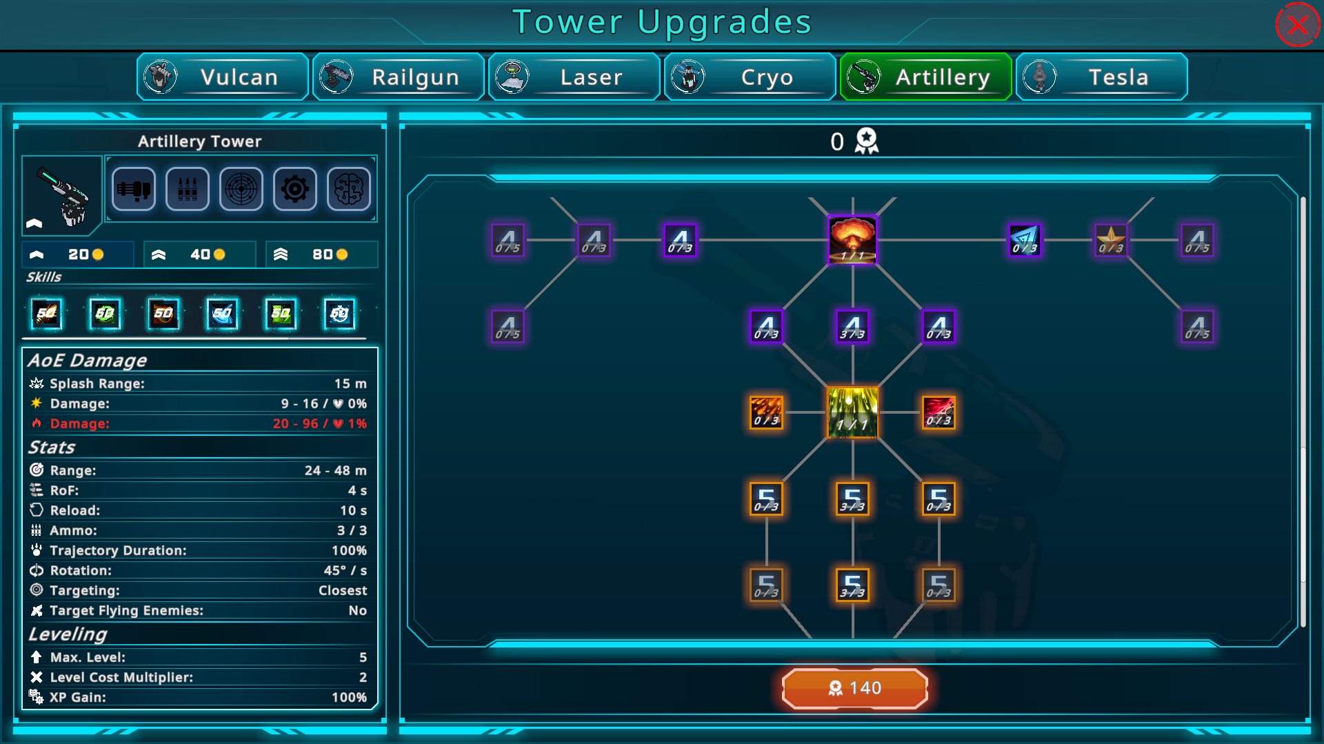 Each Tower now has 3 possible upgrades that are unlocked and improved via the Skilltree. Upgrades are ways of making your towers even stronger on a map, by spending coins to either increase some stats and/or unlock and upgrade new skills thus giving you more strategic decisions which Tower to place and upgrade. (Upgrades can not be sold seperately!) Each Upgrade is individual for each Tower and is gone if you sell this tower or leave the map. The Tower Tier decides which upgrades you can buy and how many levels of it. At Tier 1 you can only buy the first upgrade (given that it was unlocked in the skilltree) and only buy 1 lvl of it. Tier 2 allows for buying the second upgrade aswell and raises the max level of all upgrades to 2. Tier 3 then allows to buy all unlocked upgrades and raises the max level of all upgrades to 3. Note again, that these upgrades can be improved via each skilltree. So an upgrade that may seem "meh" at first, might turn into a good damage boost over time. We've also put in a lot of skill nodes and balancing to make sure you don't have to play with 2 towers now each level because you are out of coins. There are many ways to recude upgrade and build costs but we've also tweaked all values, so that you (hopefully) have enough freedom in choice of Towers and Upgrades.