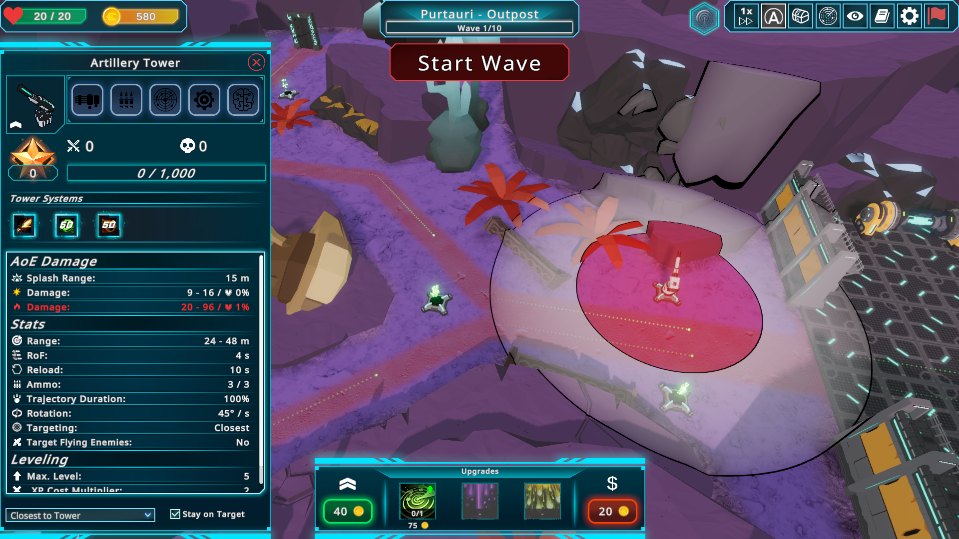 Towers now have a damage range instead of a fixed damage value. So for example, if a tower has 5-10 Physical damage, each shot a number between 5 and 10 is rolled. For AoE damage each enemy hit is rolled individually. We think this system brings a bit more dynamic to the battlefield and also allows us for fine tuning some skills and damage types to our ideas. For example lightning damage having a high roll range, while cold damage is a bit more reliable in that it has not a great roll range, but also less damage in general. It also allows for more customization of equipment, as you are able to pick wether you'd like to increase min or max damage of an element.Tower Levels