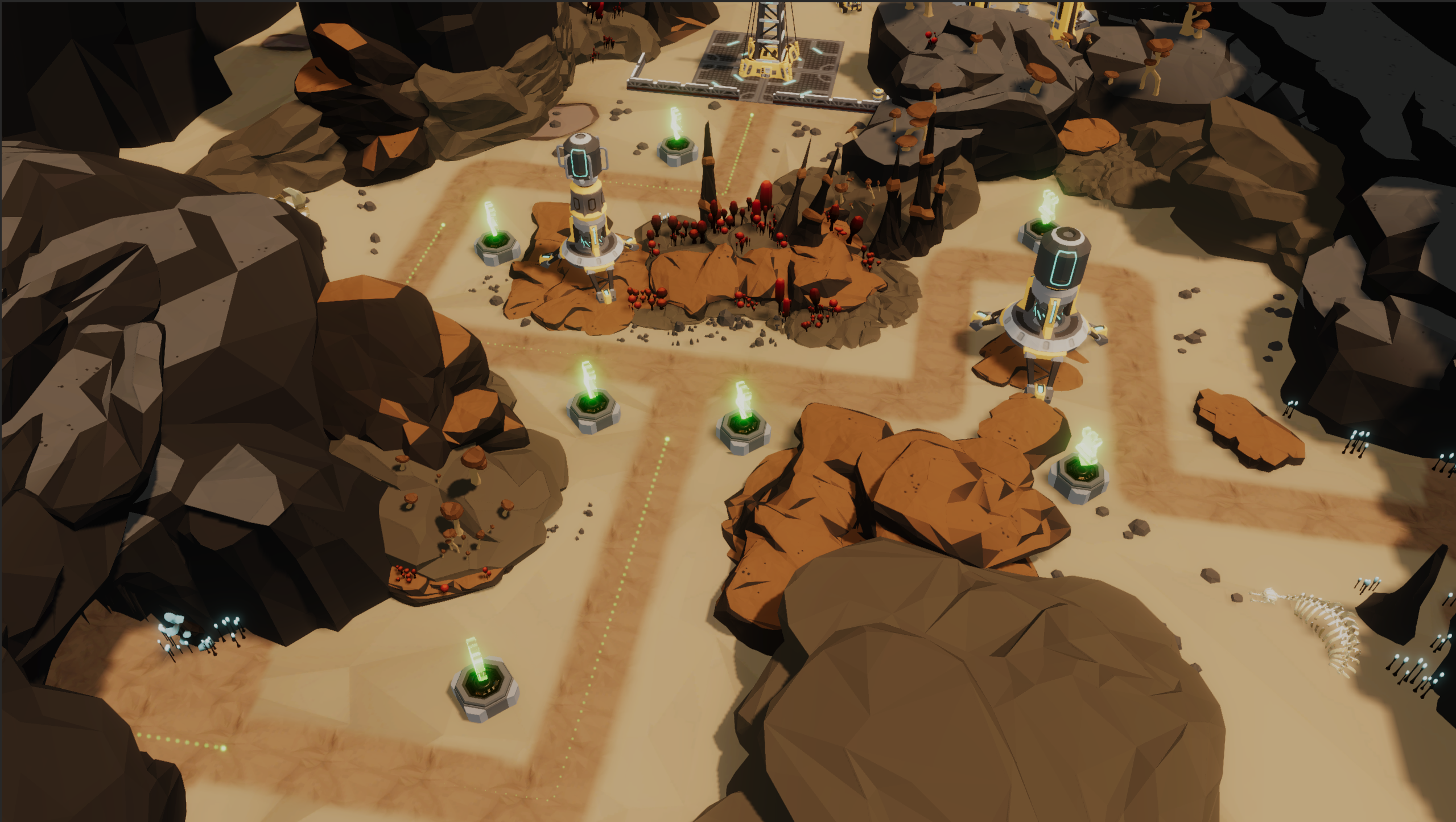 We've switched to Unitys "Terrain Feature" and started to replace the ground of some TD levels. This allowed us to use textures that look better in our opinion and we also drew some "road" textures for the enemy paths. We feel that it now looks a lot more "Tower Defensy" that way - What do you think? Here are some examples of the rework: Before