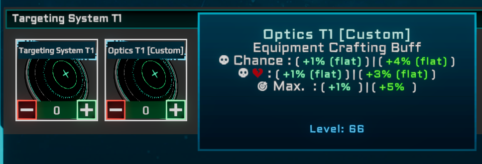 - Tooltips in the modification item selection now show the level this would add to your recipe if it is more than 1: