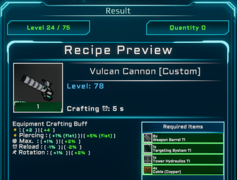 - The resulting Level of the item created by a modified recipe is now also shown under it's title:
