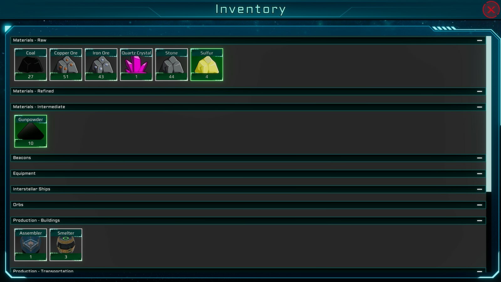 - Smelter and Assembler buildings can now store up to 250 input items, to allow for more resource hungry recipes. The max amount of output items is still 25 though.