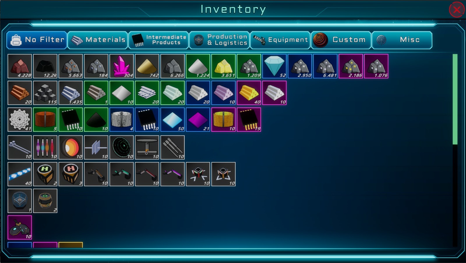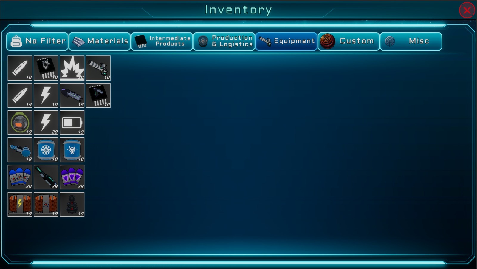 We've also overhauled the inventory screen and added some filters on top. We are waiting for your feedback on this and if you like it, we'll also want to add it to other "select item" screens, e.g. for Drone Pods.