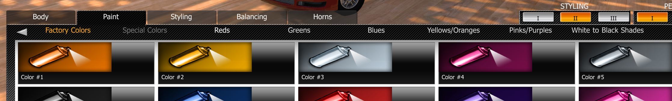 Build 5030 focuses on adding more car colour options to the game. To do this, we have split car paints out of the Styling tab in the shop and garage into its own tab, leaving the rest of styling in its tab.