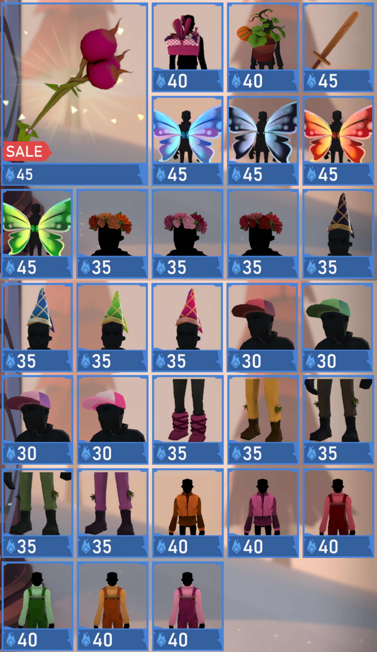 - fairy wings (blue, black, red, green)