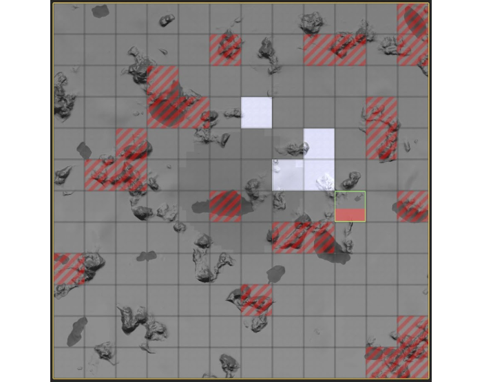 Each scenario map is split by blocks. Some blocks are not available for research, e.g. high mountains or lakes; others are discovery spots where geologists can be sent to run the research.