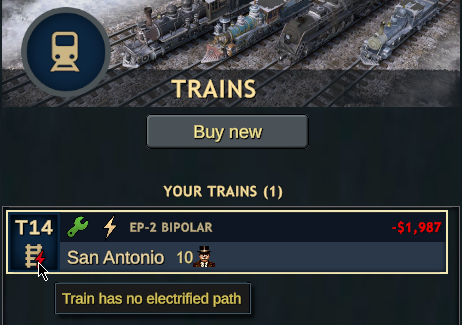 Moreover, we’ve added in a new status for electrical locomotives: they will now be able to alert you when it cannot reach its destination because there isn't a fully electrified path available.