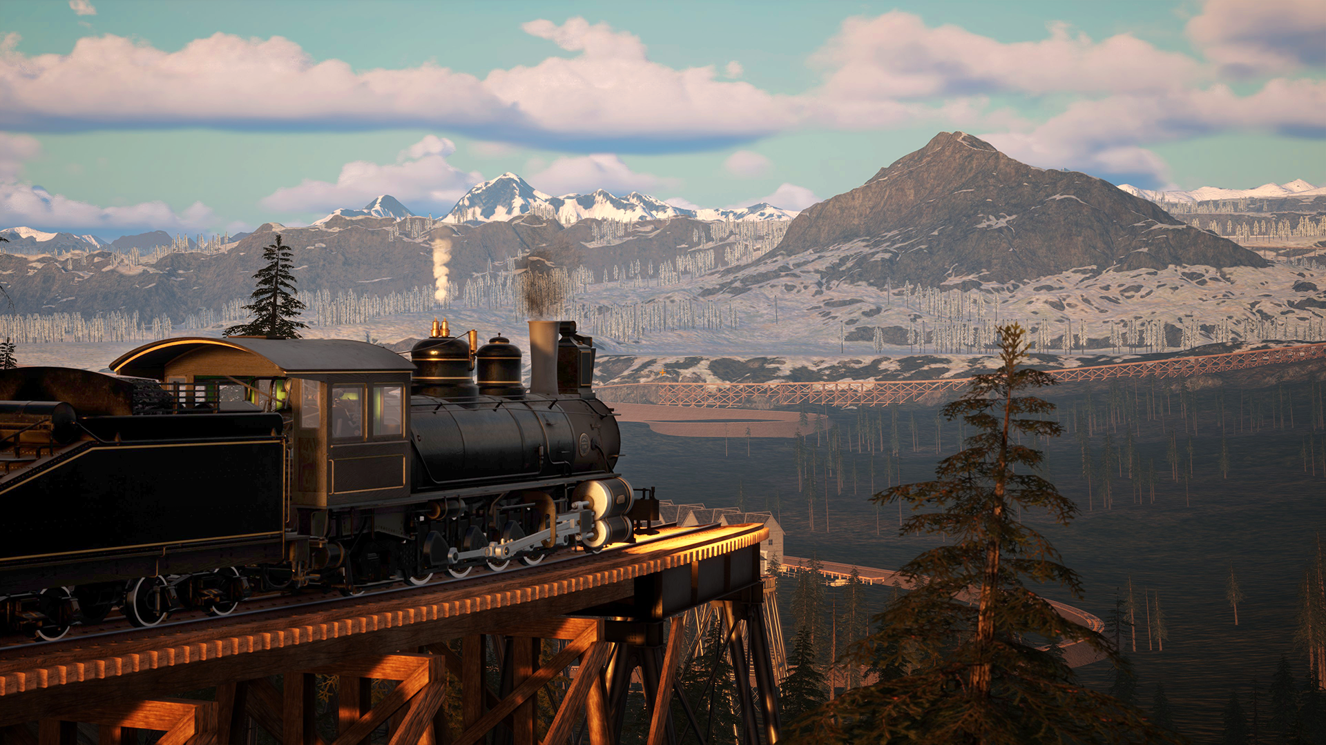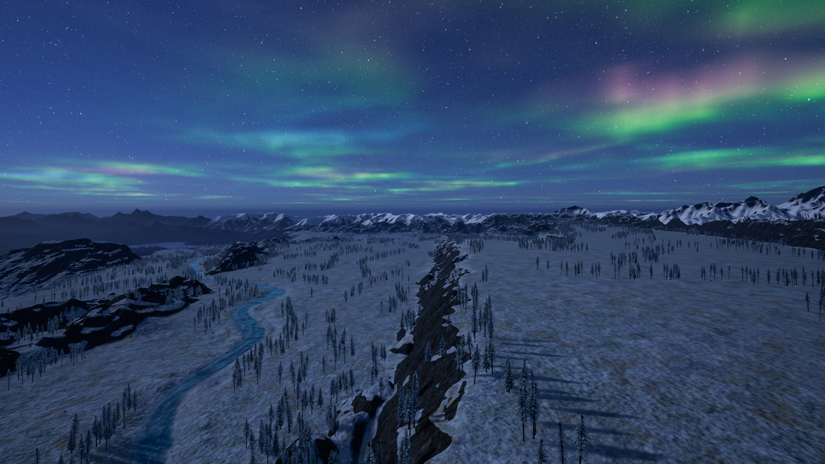Ride your first locomotive through the snowy landscape of the new winter map, [b]“Aurora Falls”[/b]! Discover the environment with its great white mountains and expansive grassy plains, which offer stunning views while riding your favorite locomotive. You can find lakes, rivers and [b]waterfalls[/b] scattered across the entire map and even experience illuminating [b]polar lights[/b] at night!