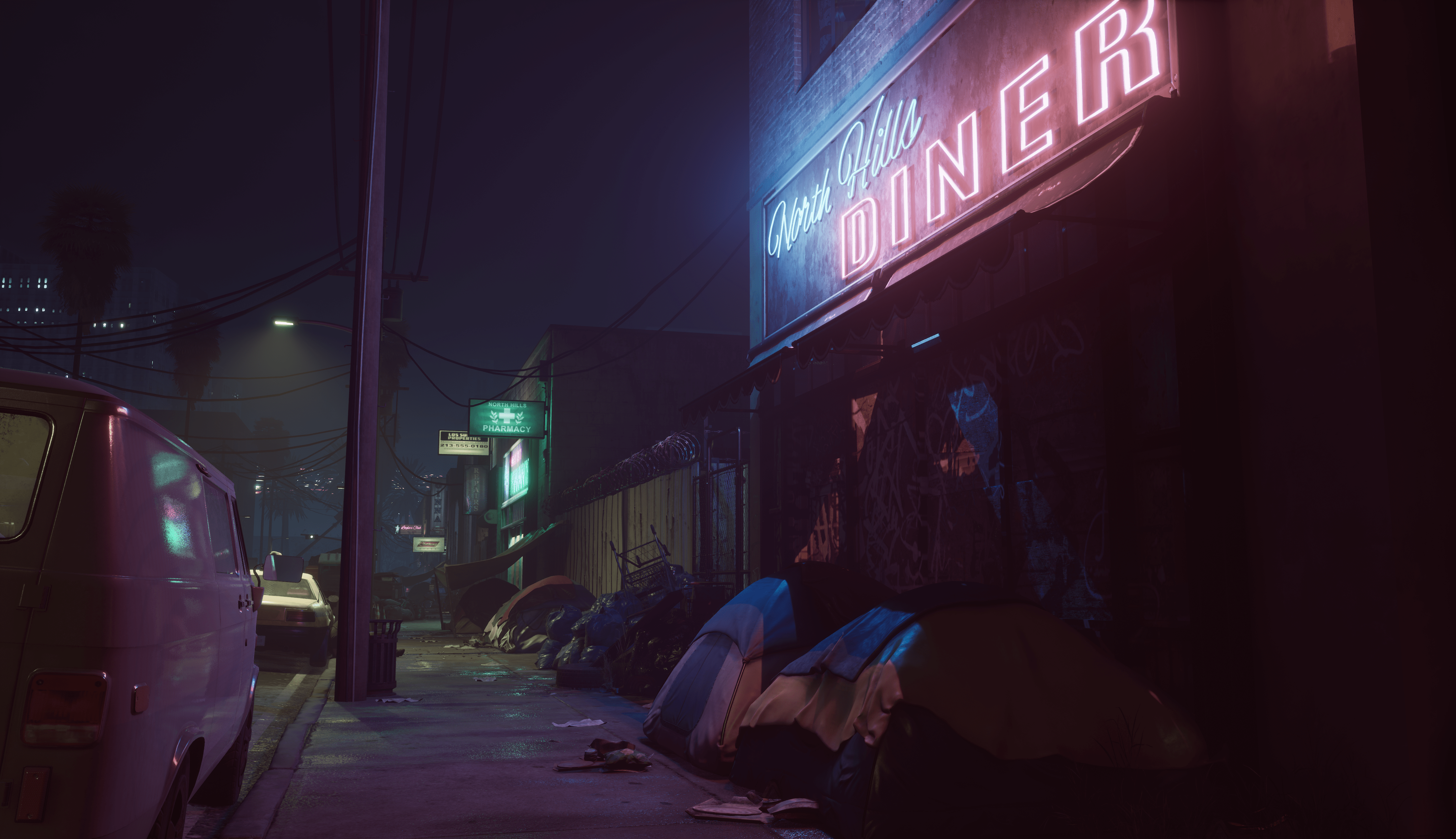 [i]"We still wanted the player to be able to see where they are going, as pitch-black is not friendly for navigation at all, and we don't want the players to feel punished (being at a disadvantage, sure!) for not bringing a flashlight. This is where the overall rain and wetness factor again comes into play, where we can use the reflections of the lights rather than direct illumination to pick out edges and highlights on darker objects [to assist navigation].” [/i]