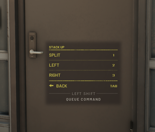 [/i][/u] You now have the ability to micromanage your stack in careful combinations as you approach your breaches. Choose which side of the threshold (e.g. door or hallway opening) that you want your team to stack on, split the stack, or even order individual officers to swap places with one another. [i][u](GIF below: The new stack up command menu)[/u][/i]