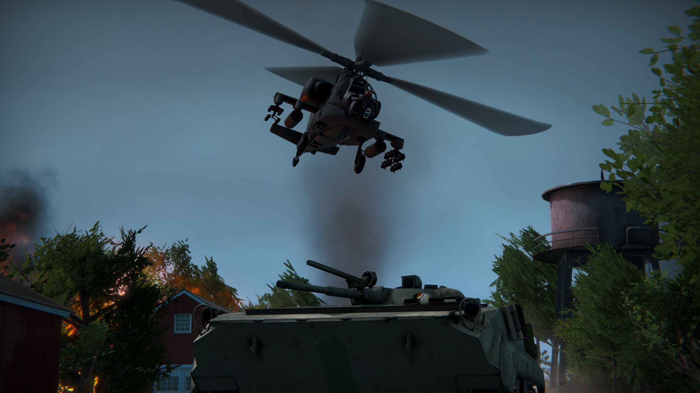 [i]US AH-64, carrying just half of standard 8 Hellfires, overflies a rebel BMP-1 with its ATGMs entirely spent[/i]