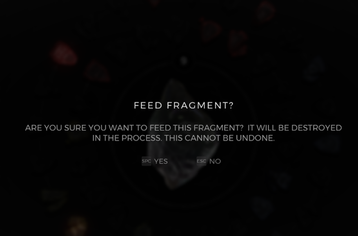 Now, you may be wondering if you can control which choices appear when your Prism is leveled up. The basic answer is “no”, but there is a caveat. You can actually FEED a Fragment to your Prism to skew the chances of that stat rolling when choices appear. It’s much more effective early on when you have multiple empty slots.