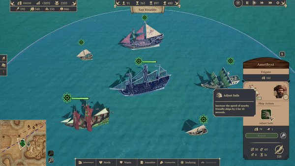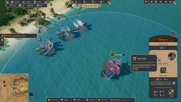 In our last few posts, we’ve given a detailed breakdown of how to manage your fleet, conquer the archipelago, and cultivate your relationships with other factions. Today, we’re excited to be revealing a [b]new combat mechanic [/b]in the form of [b]active ship skills[/b]. This recently implemented system will add an extra layer of strategy to naval battles and will make fleet building and composition even more impactful! In[url=https://store.steampowered.com/news/app/2103470/view/6107508076986469993?l=english] update 4[/url] we looked at the role of the fleet, shipbuilding materials, ship classes, and customisation. To recap, you will [b]use your fleet to explore the archipelago[/b], and [b]attack merchants and rival pirate ships[/b]. In doing so, you will [b]receive valuable loot[/b] which will help you to [b]build more advanced ships [/b]and [b]conquer additional islands[/b]. By conquering more islands you’ll then gain access to rare resources and more land to expand your republic.