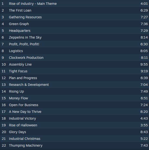 Don't worry, we haven't forgot the tycoon-worthy tunes from our 2130 [url=https://store.steampowered.com/app/1139110/Rise_of_Industry_2130/]DLC![/url]