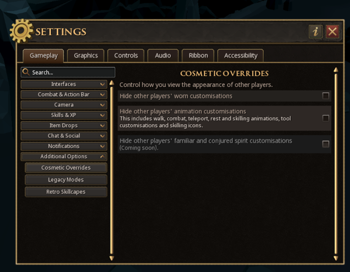And later this year, we'll give you even more toggle options, including hiding other players' summoning familiar customisations.