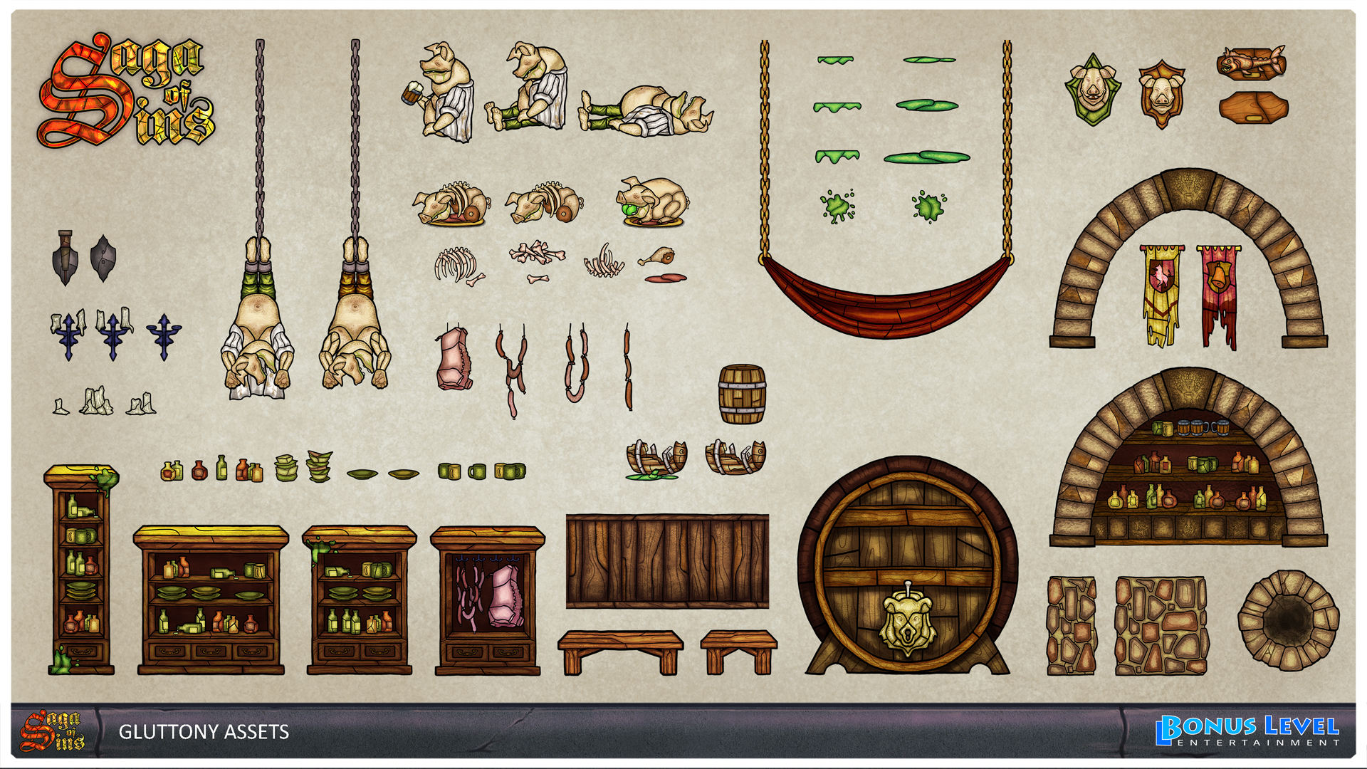 Below you can find some of the assets we created to decorate the Gluttony levels.