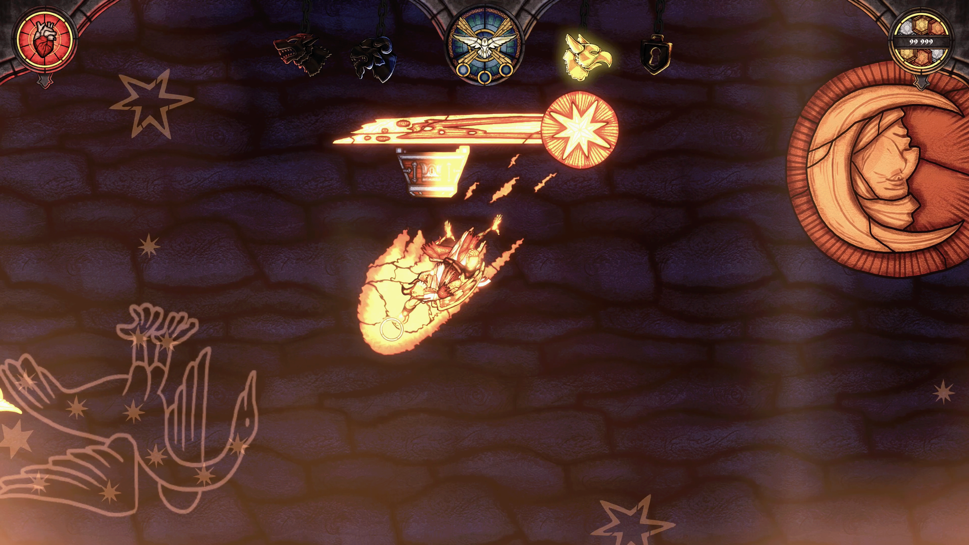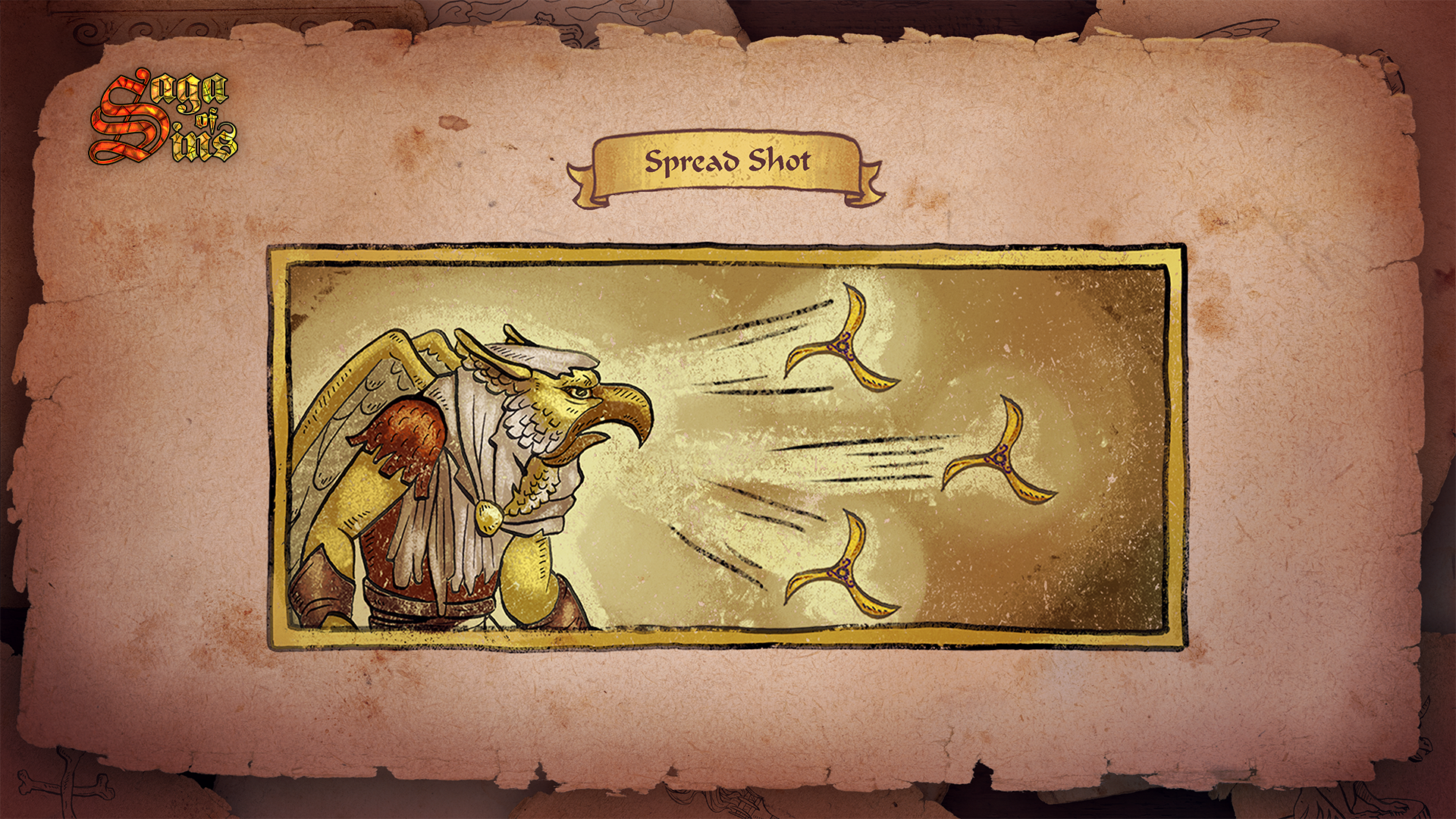 The Griffin features a spread shot that can be upgraded by donating gold to Madonna statues. Upgraded from two to four projectiles at once! This makes him super powerful for combat. So, make sure to collect lots of treasure chests and perform your Power Dash on multiple enemies, as this will make them drop twice as much gold!