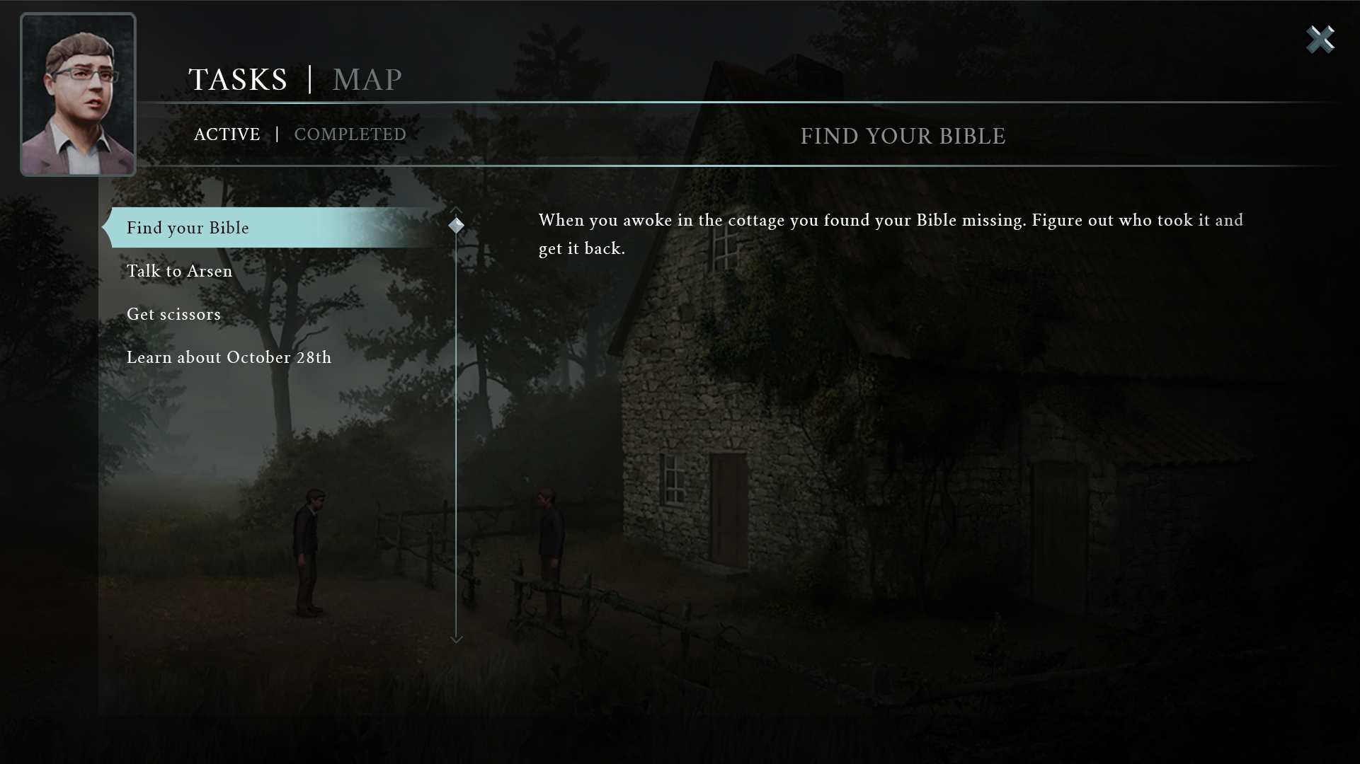 A new feature is the Memory system! It allows you to see all the tasks, be it completed or active, and the map of the town and its surroundings. This will be very useful as Saint Kotar not only has main tasks (or quests, if you prefer), but also side tasks that are not mandatory to be solved in order to progress through the story and finish the game. Although, if you do complete them you will be rewarded for doing so.