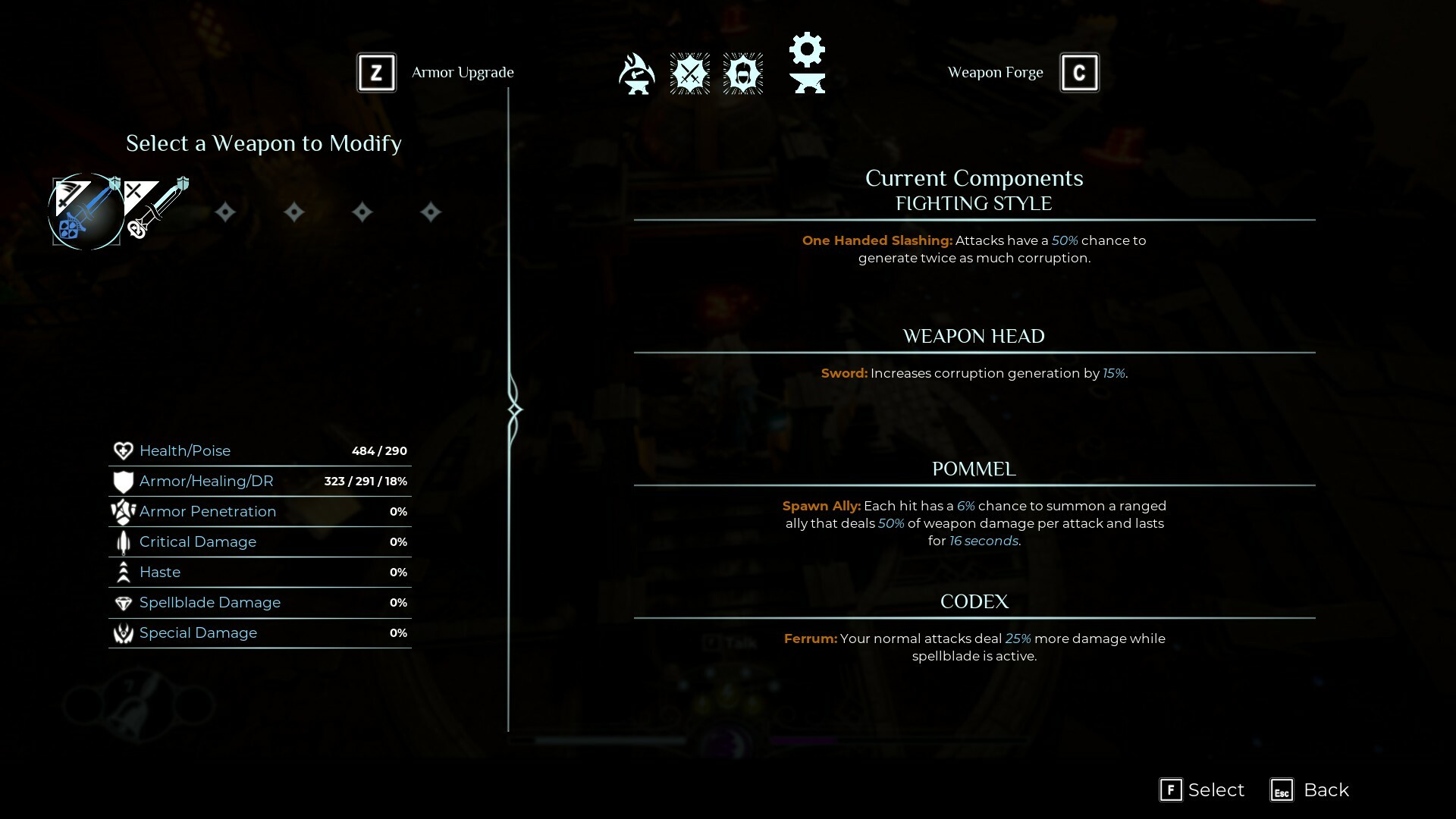 Previously when you unlock a new codex or pommel at the forge, you are required to craft a brand new weapon. Now, players can modify their existing weapons with new codex effects, pommels, and weapon heads at the forge without needing to upgrade from level 1! This will allow you to quickly go back out there and test the effect of your newly modified weapon.
