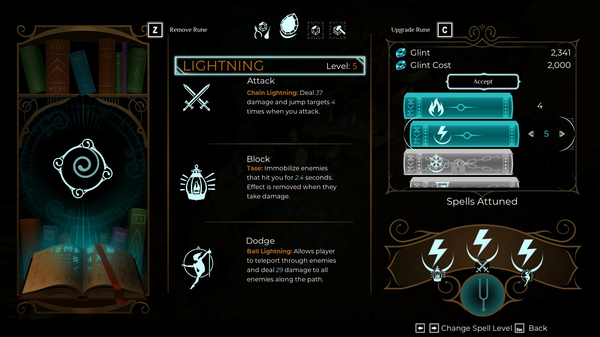The second is that Spell Blade Elements' levels now consume glint to upgrade, and no longer require spell gems.