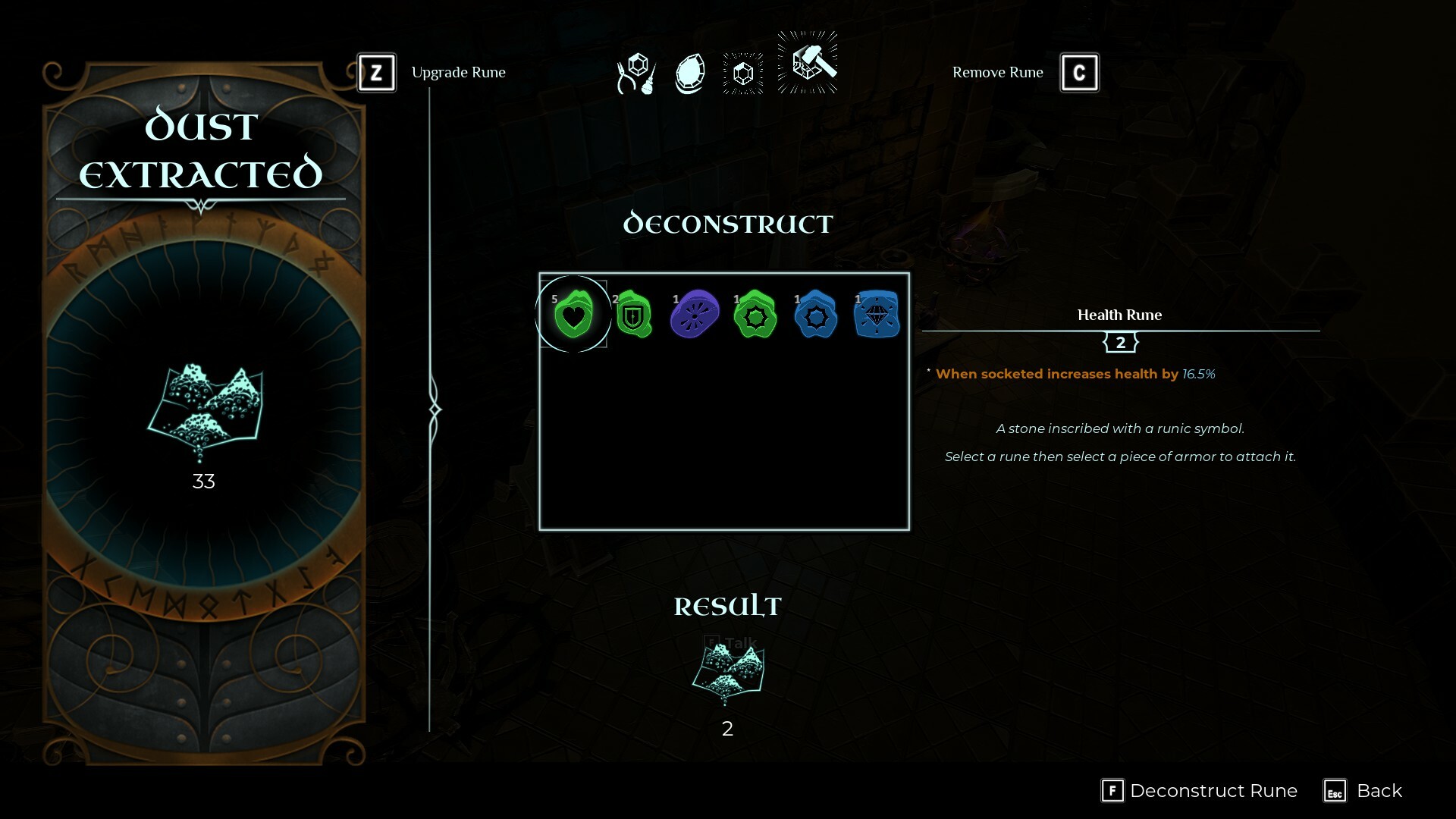 The runes are perhaps one of your most important stat boosts to your gear. Previously players would find excess runes that they don't want and not enough of what they need. This system allows you to deconstruct those unwanted runes and use the materials to craft or upgrade the runes you need for your perfect build.