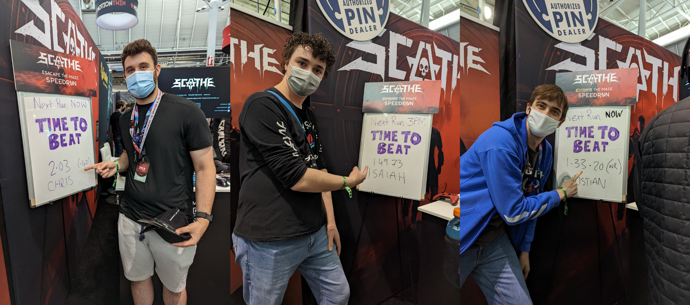 Chris, Isaiah, and Christian emerged victorious and will each receive a free copy of Scathe on release. Christian's staggering time of 1 minute and 33 seconds remains the world record ????