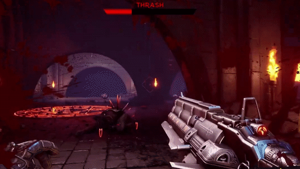 Towering in over all other demons, Thrash’s colossal stature approaches that of the Guardians themselves. He defends his quarters with a ferocity nearly unmatched in the hostile labyrinth of the underworld. The blast from his twin cannons will keep you at a distance but, should you dare to approach too close, he’ll crush you into a fine paste with his deadly ground pound.