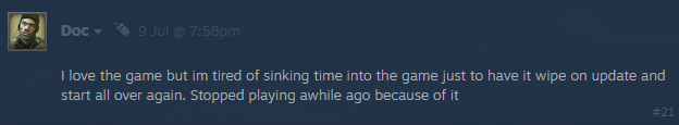 - I get that wipes are a pain in the backside, but they are an unfortunate necessity for games such as these in the genre that we inhabit. With wipes, we ensure that everything new that comes into the game is adequately implemented, without some weird edge cases. What we can do is minimize them, but we can't get rid of them entirely. That's just the way it is.