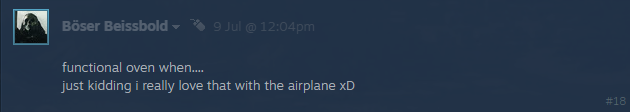 - We have this in mind and we'll consider adding it into the game. We're working on quite a few cool new things that will come into the game by the end of the year. If the oven does come, it could be next year at the earliest.
