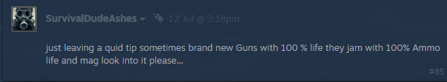 This should not be possible and this is a bug. Guns at full, or almost full health should not jam at all. we are working to have this fixed as soon as possible and if anyone of you wants to help us with this, reach out to us via our support, discord or in the steam bug report forum.