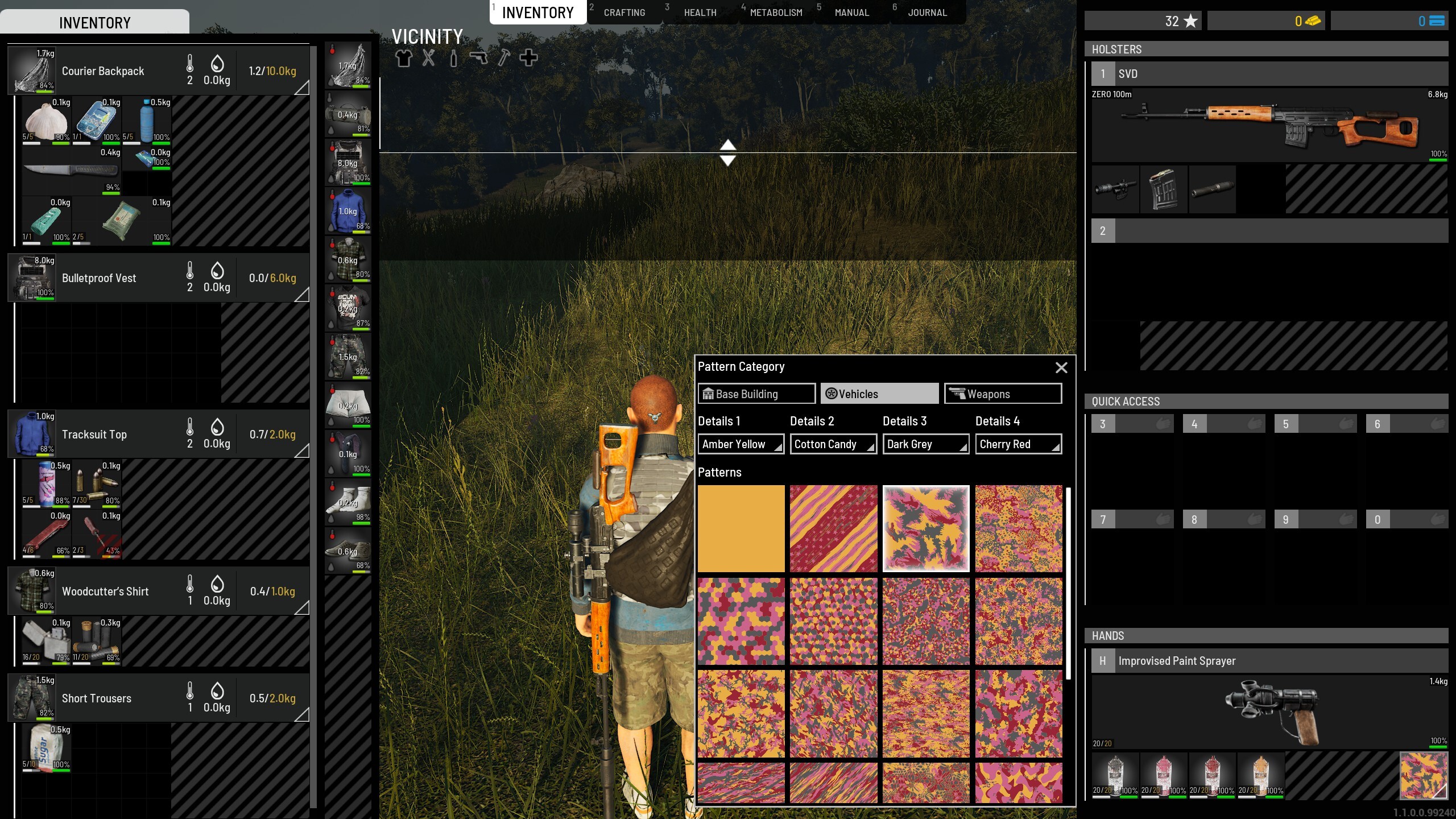 Another big QoL change is the way we approach painting patterns on stuff. To start, you will need to craft a new item, the paint sprayer.