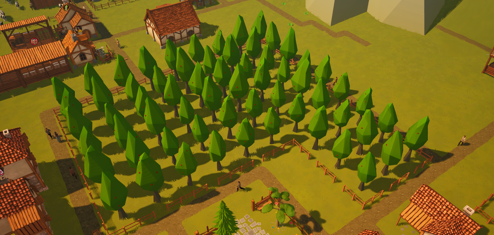 - [b]Orchard:[/b] In Orchards, orchardists plant and grow fruit trees. The planted trees start bearing fruit after approximately 1 in-game year and reach full maturity in about 3 in-game years. Fruit trees require water and fertilizer to grow effectively. While rainy weather can fulfill their water needs, a Compost Yard must be built to meet the fertilizer requirements. Without adequate water and fertilizer, trees grow slower and produce less fruit. Unlike Crop Fields, Orchards provide food production throughout the year.