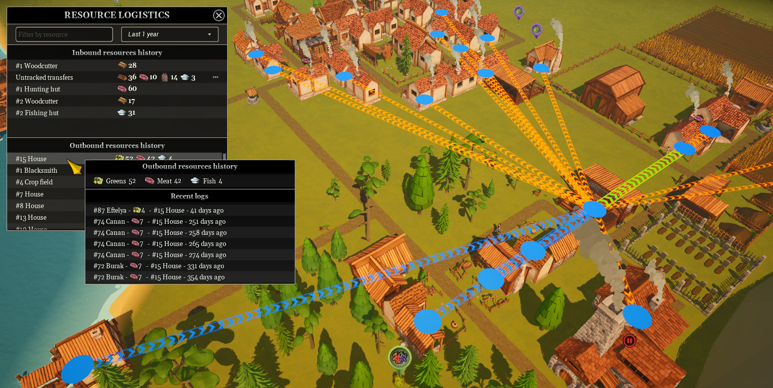 Records now track which resources are transported from which buildings to which buildings, and by whom, for up to 4 years. This allows players to see the extent of resource transfers between buildings. To access logistics records, click on the resource logistics section in the building management panels. In the logistics interface, players can view transfers of all resources or specific resources over a period ranging from 6 months to 4 years.