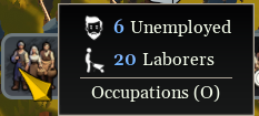 - [b]Idle Villagers and Laborers Tooltip:[/b] Added a tooltip to the occupations button showing the number of idle villagers and laborers when hovered over, eliminating the need to open the professions panel to view this information.
