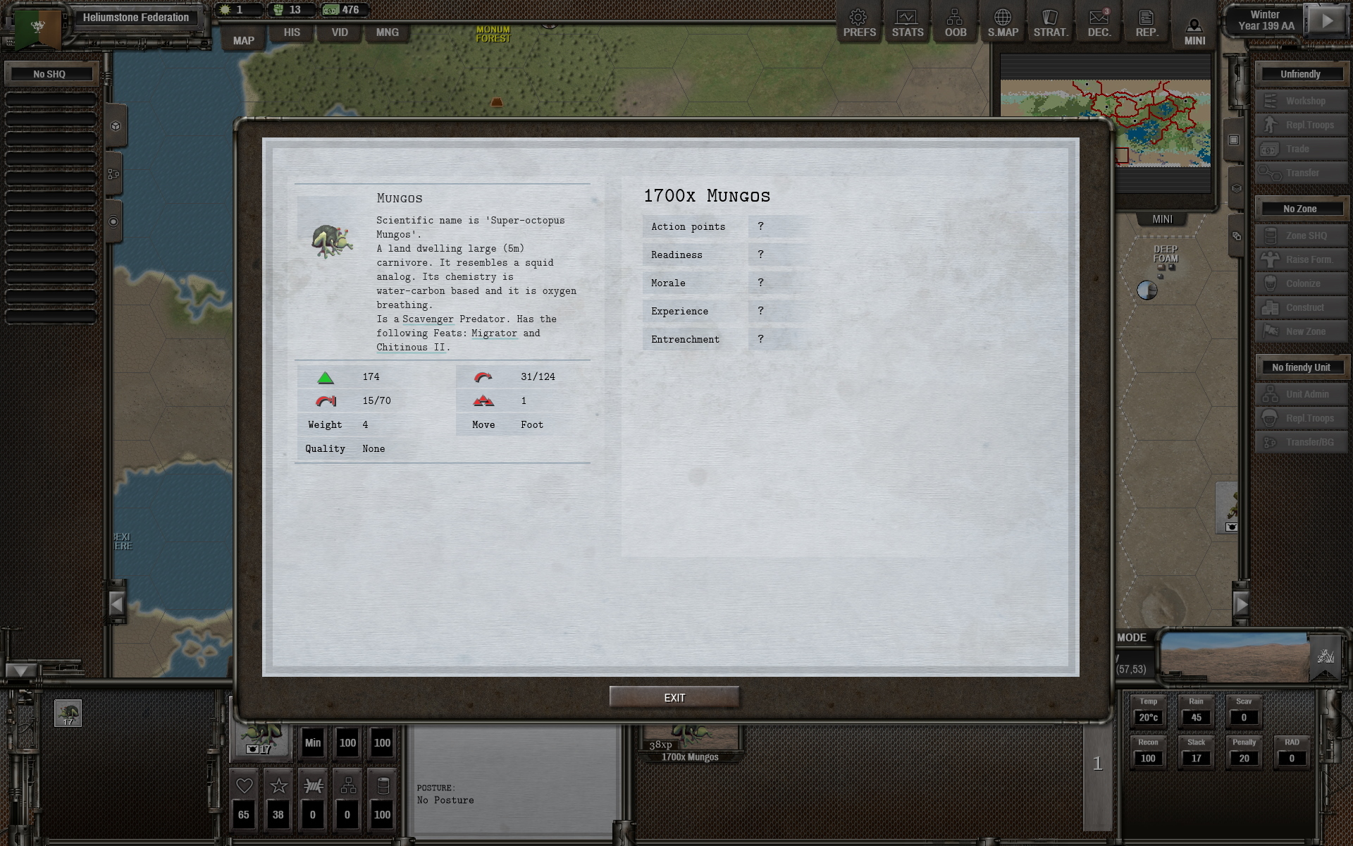 [i]5 meters is tall and with a lot of bulk, combined with chitinous armour these "Mungo" critters will be tough cookies for your militia to handle.[/i]