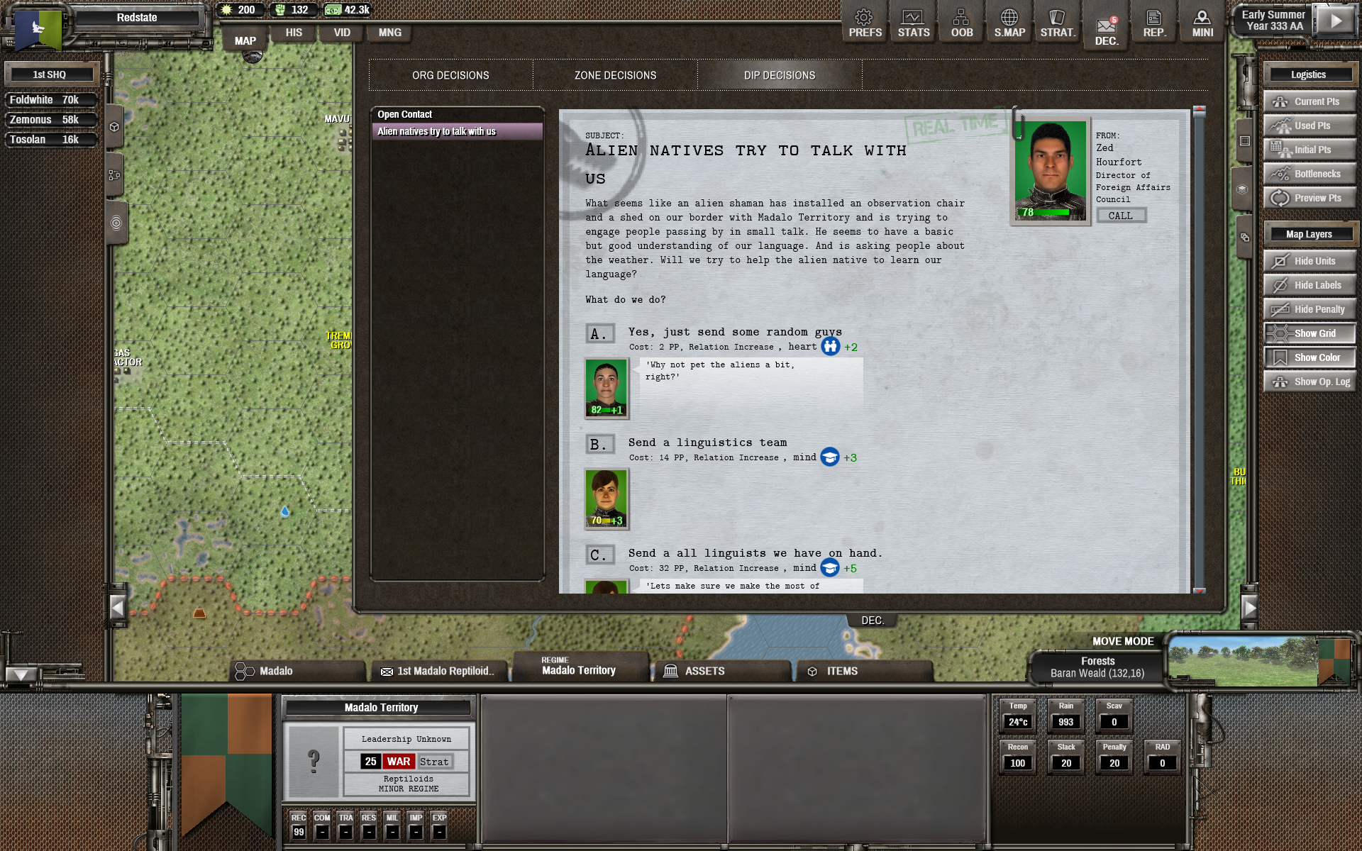 Alien natives will be present as Minor Regimes. You can send Xeno Diplomats to them, but they can also directly contact you.