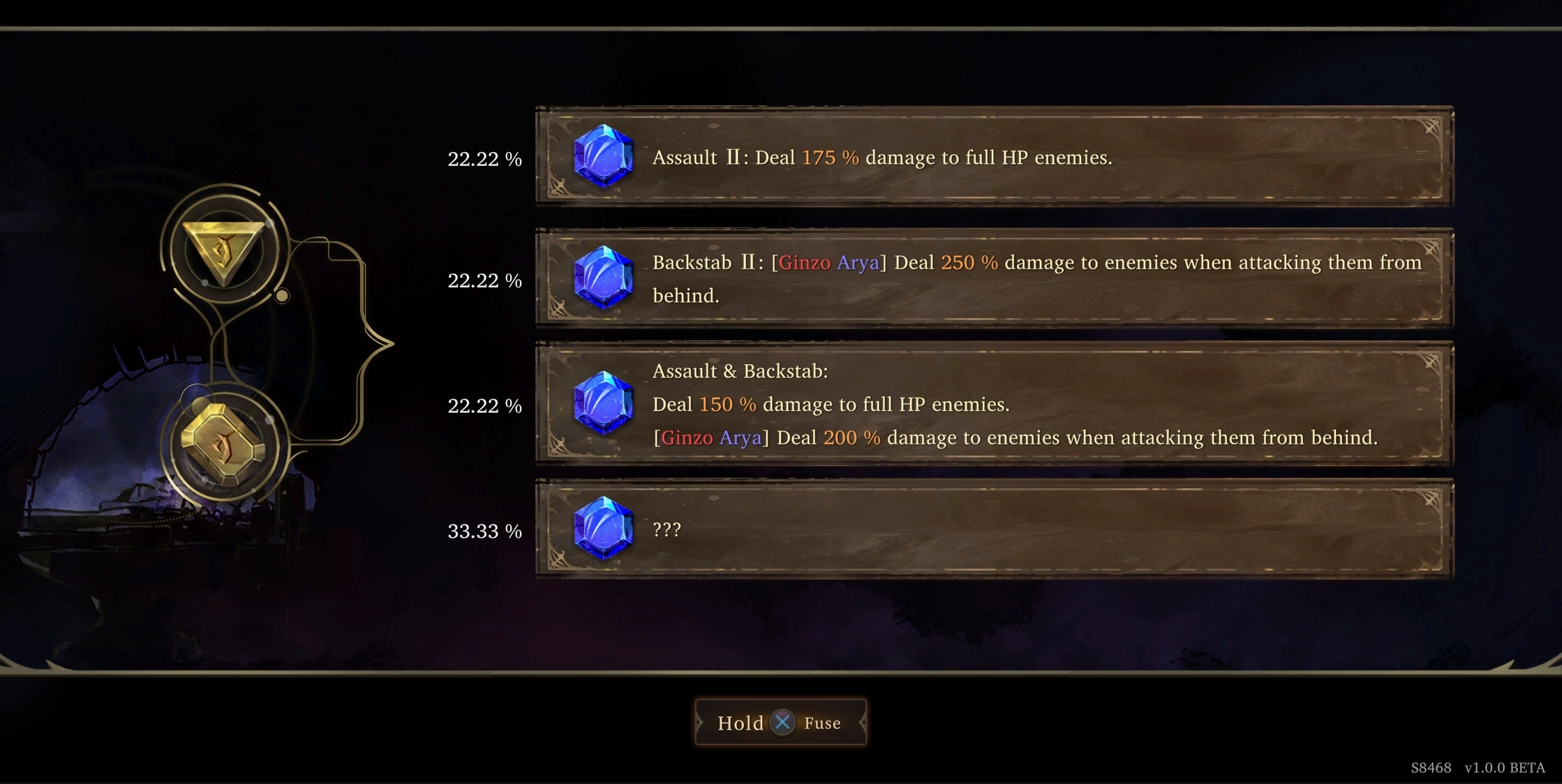 (The fusion probability varies based on the highest difficulty level the player has completed.)