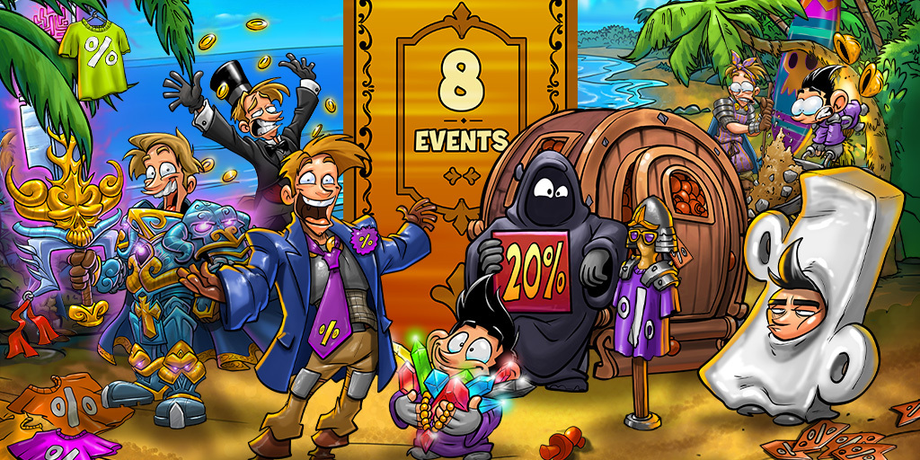 Get ready for the following [b]WEEKEND EVENTS[/b] from Friday to Sunday: Summer Sale, Crazy Mushroom Harvest, Exceptional XP Event, Glorious Gold Galore, Piecework Party, Fantastic Fortress Festivity, Epic Shopping Spree Extravaganza & Tidy Toilet Time.