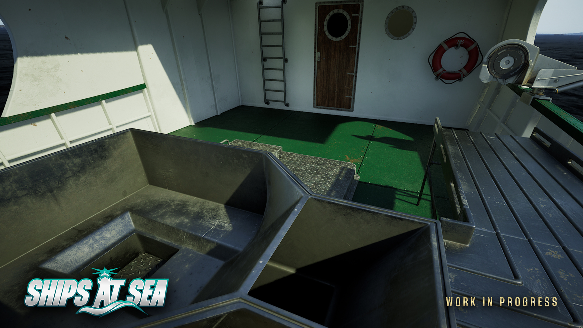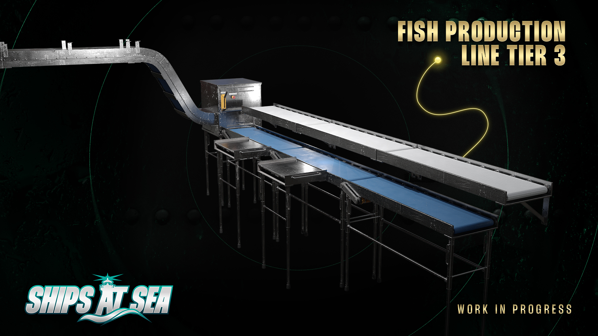 Fresh caught and ungutted fish will be transported from the bleeding box on the work deck to the production line. Using a conveyor system, as you can see above, the fish will move through the processing area, where players can interact with the gutting stations.Longline Hauler