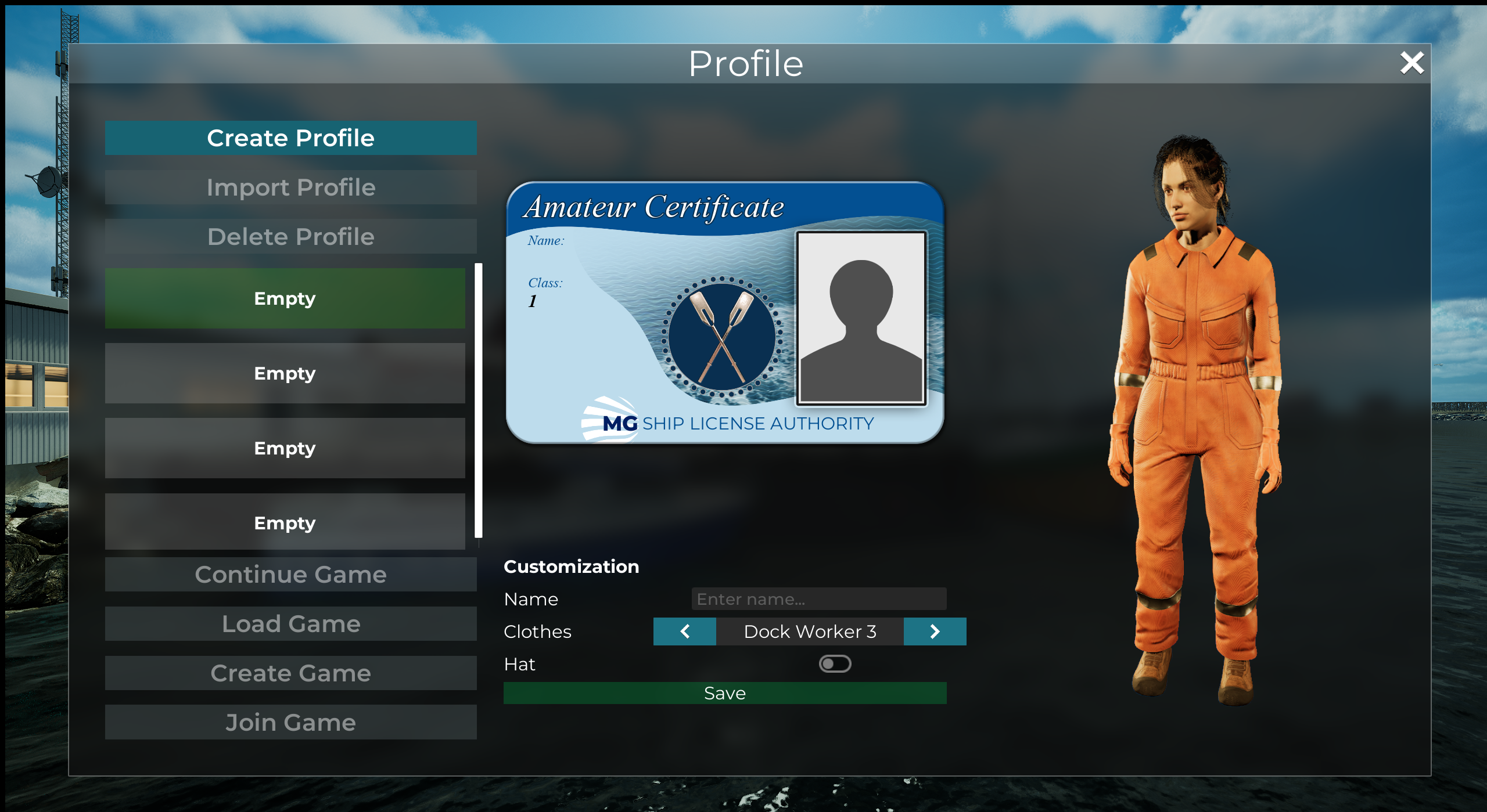 After starting a new game, players can create and customize a profile. This profile will save their progress, including level, boat certificate, and experiences.