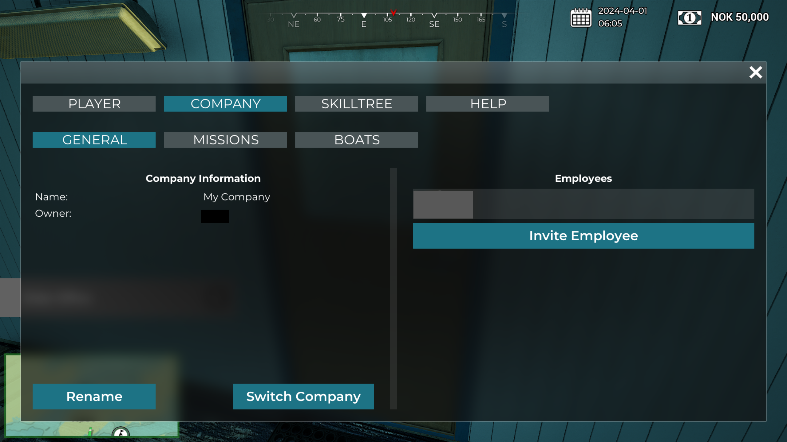 With Update v0.7.5, we are introducing the long-awaited company feature to add depth to both single and multiplayer gameplay, whether in co-op or competitive play. Here’s how it works:- [b]Company Creation[/b] As soon as a player starts a new game or joins a session, whether it is single-player or multiplayer, they automatically create a company. Each player begins with an initial capital of 50,000 NOK, which they can use to build and expand their company. When players join a company together, their starting capitals are combined into a single pool.