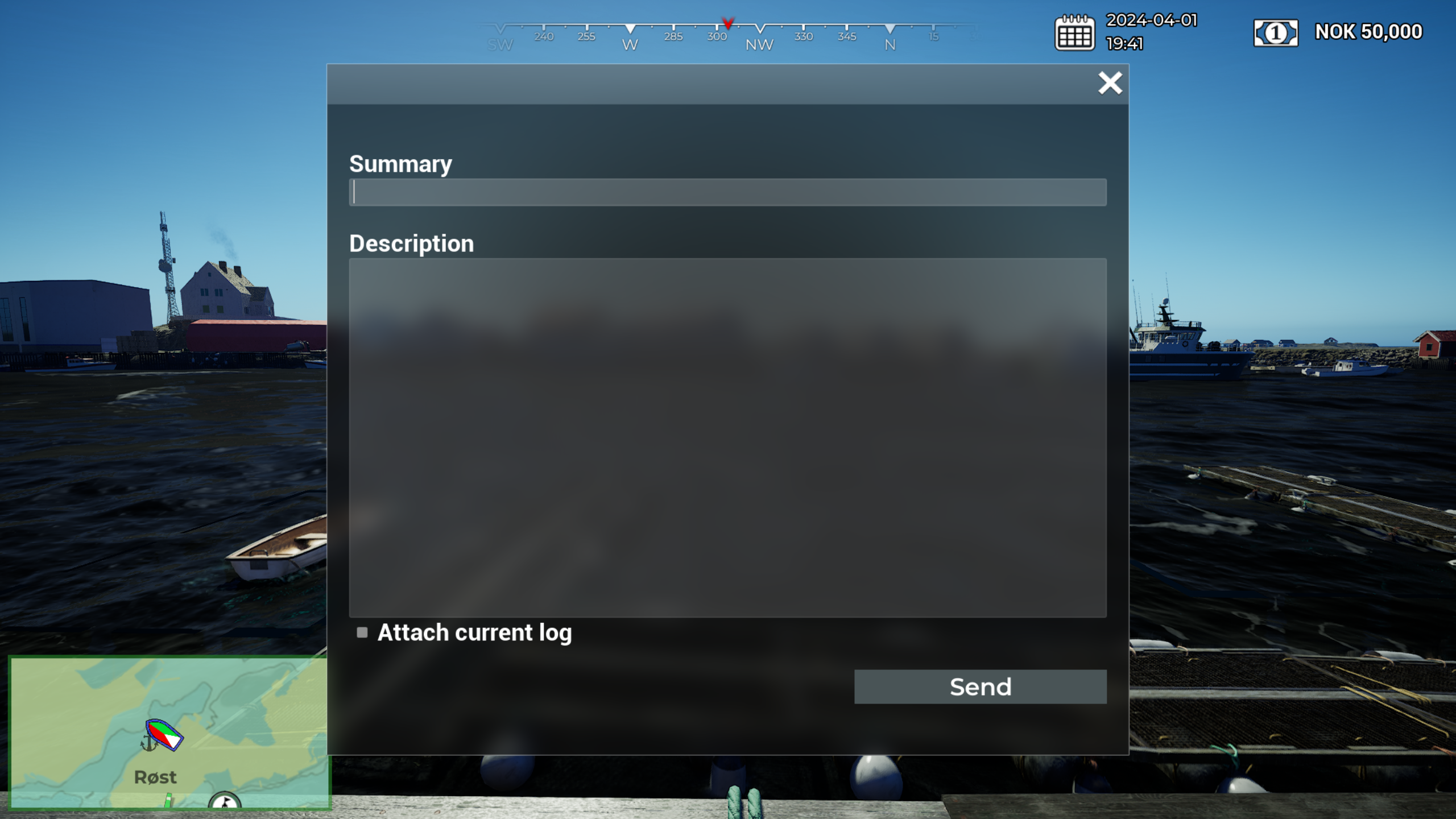 To help us resolve issues effectively, please include detailed steps of what you did before encountering the bug or crash, specify which boat you were using, and indicate whether it occurred in single-player mode or multiplayer as a host or client. Please check the box for [b]Attach log file[/b] to send us a report of your current game session and hardware details. Don't worry—no personal data will be shared!