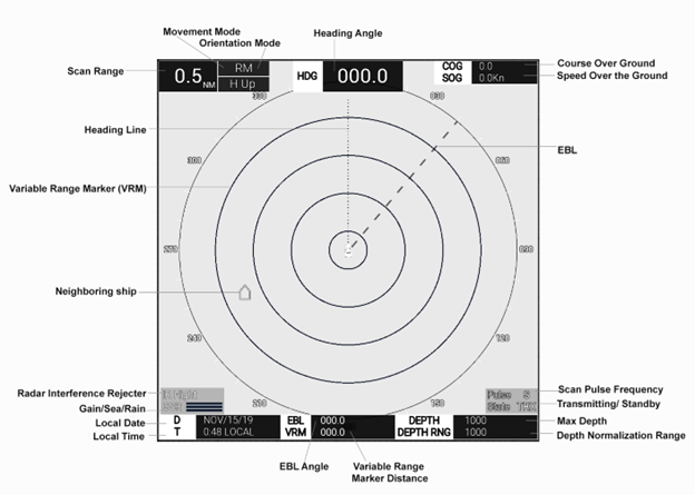 [*]Variable Range Marker Distance (VRM) (Range Rings): Controls the display range of the distance rings
