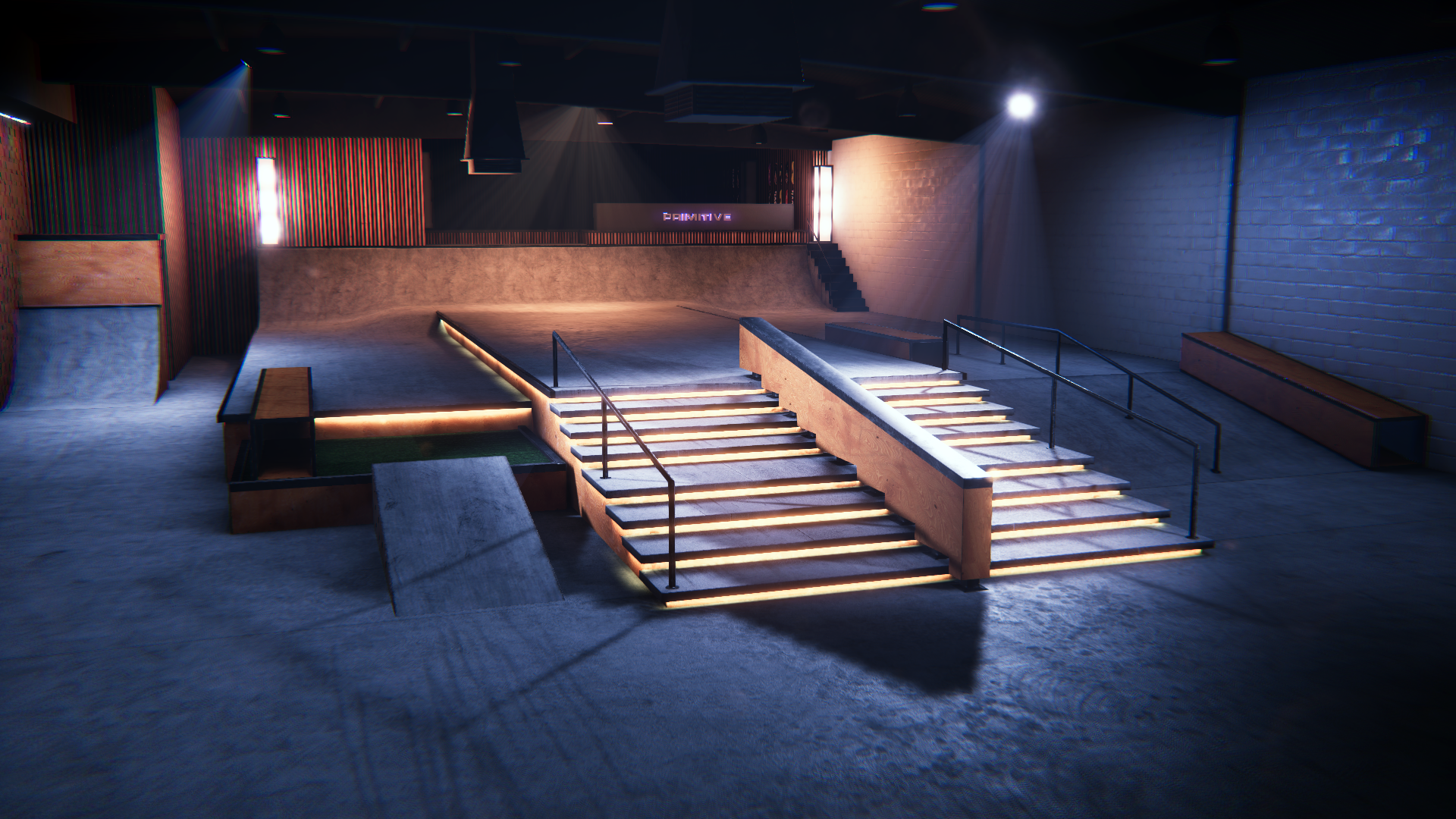 Paying close attention to the fine details of the environment, the Skater XL version of the Primitive Skatepark replicates the obstacles and flow while optimizing the size and scale for gameplay.