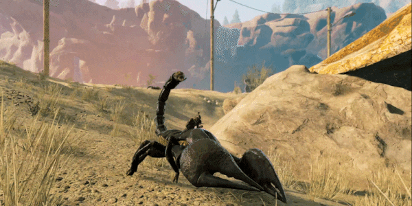 A tamed Scorpion is the perfect mount for the Amber Valleys. Its speed and agility over the rocky, sandy terrain will help you cover the ground distance in order to shut down those Aetherin turrets, and will also prove helpful in facing the other deadly fauna inhabiting the valleys.