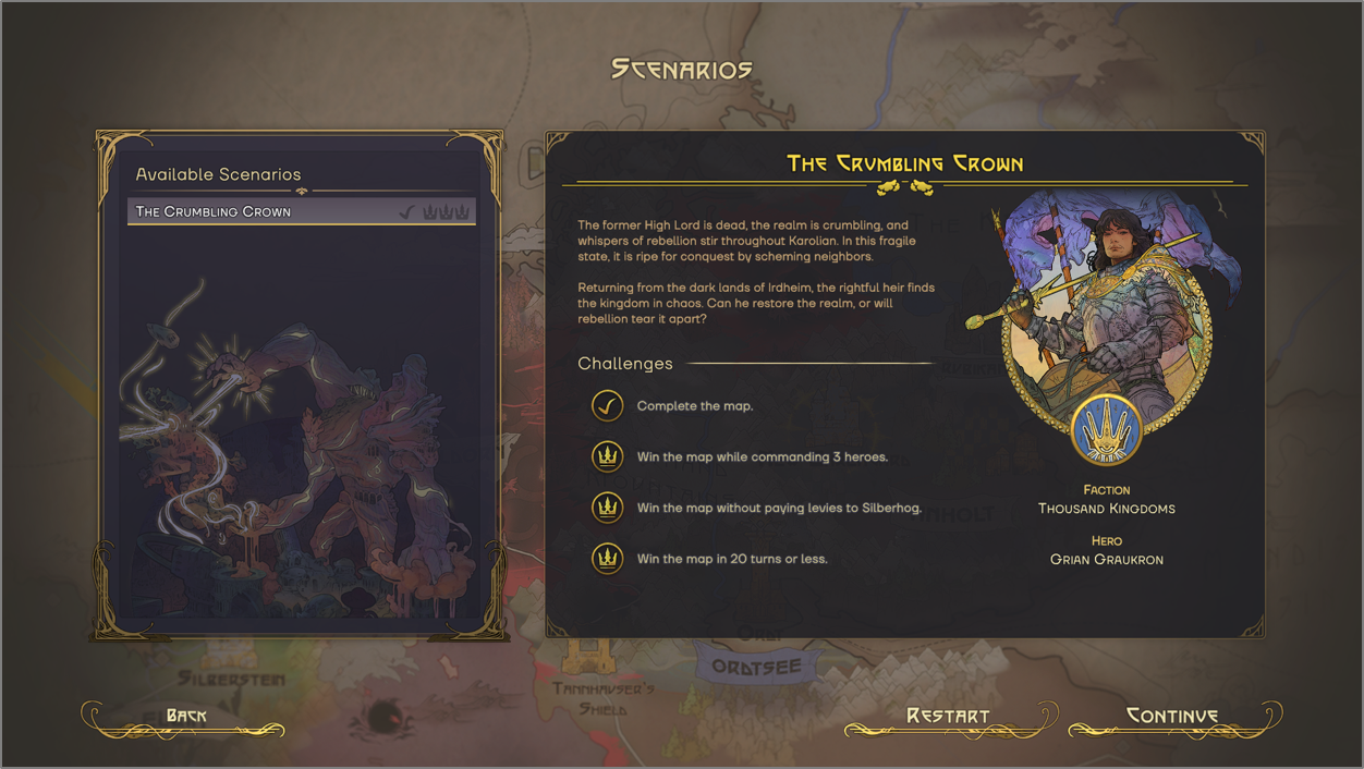 [i]Our first Scenario revolves around a young lord - Grian. Upon returning home, he finds the lands that are rightfully his, torn by conflict and power struggles. He must now prove himself worthy of his title, claim back what is his, and show cunning in the handling of capricious neighbours.[/i]