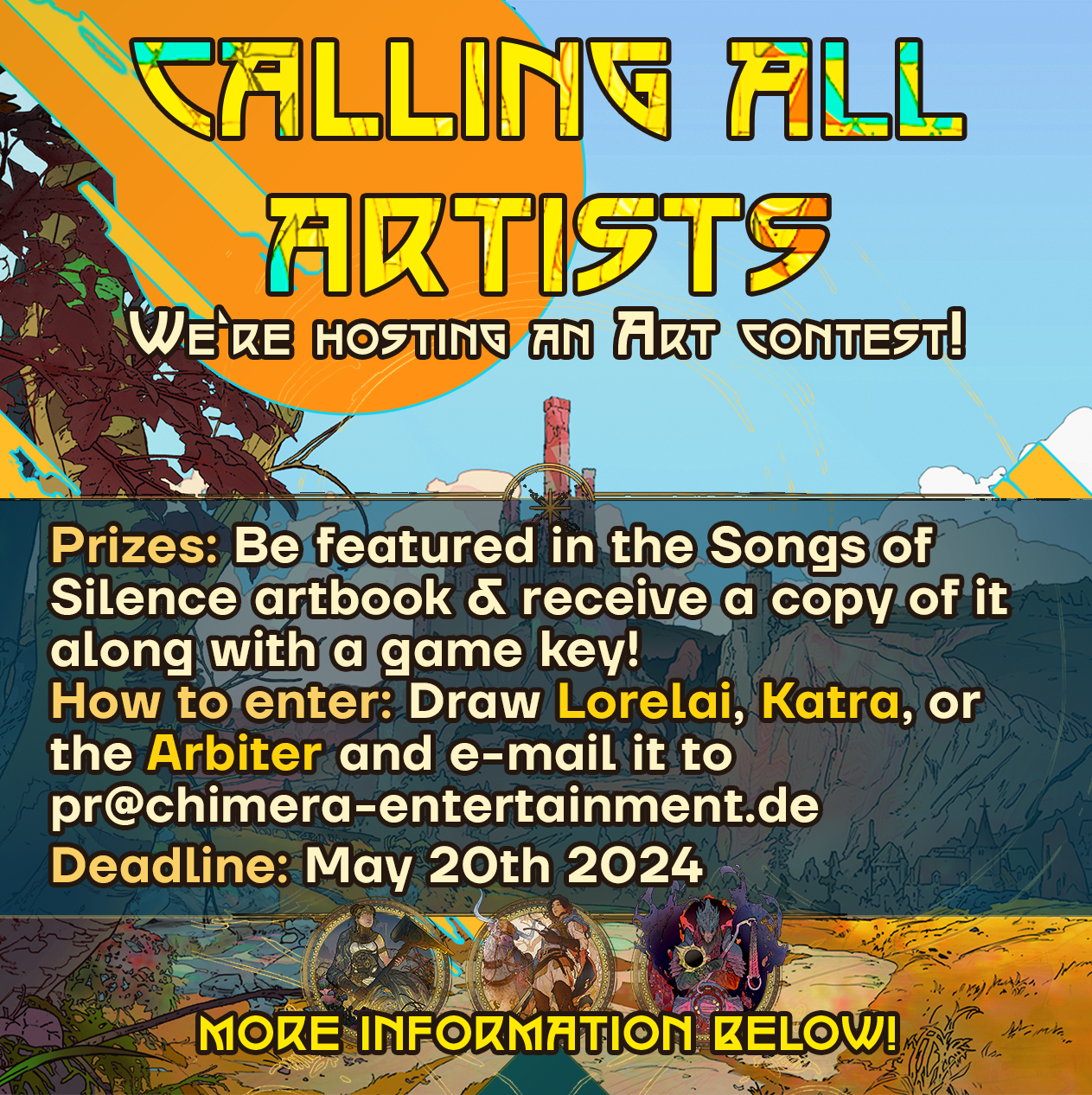 ???? Create your artwork in any digital format! ???? E-mail it to PR@chimera-entertainment.de with a short intro and your contact details! ???? We encourage you to post your artwork on your socials and in our official Discord! Use the #SongsofSilenceArtContest and tag us!Prize: