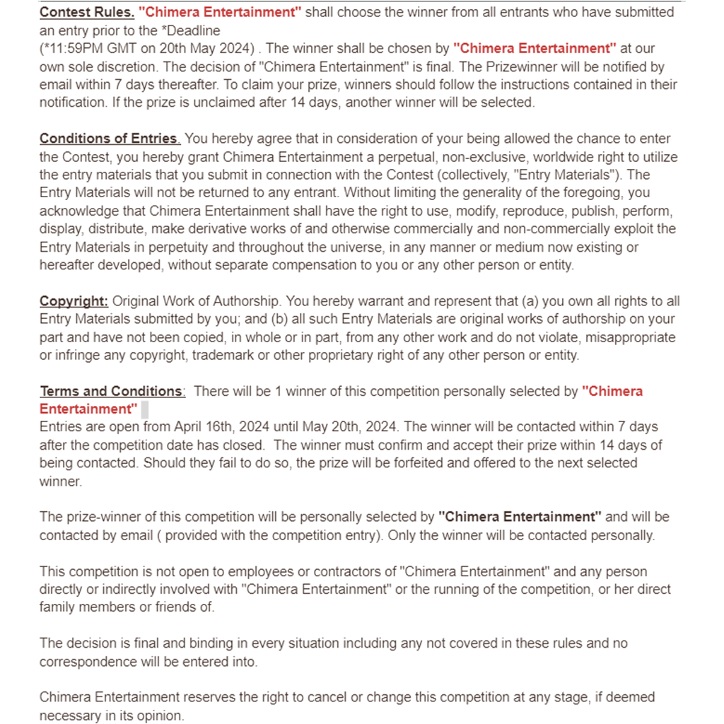 Deadline is the 20th May 2024. Winners will be informed within 7 days and have 14 days after to claim your prize. Don't miss this chance to showcase your artwork!References: