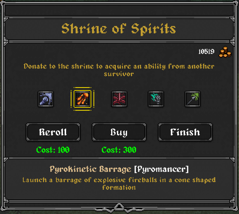 • Each shrine offers one ability from each class, but you can only purchase one ability per shrine, allowing for a maximum of two spirit abilities per run.